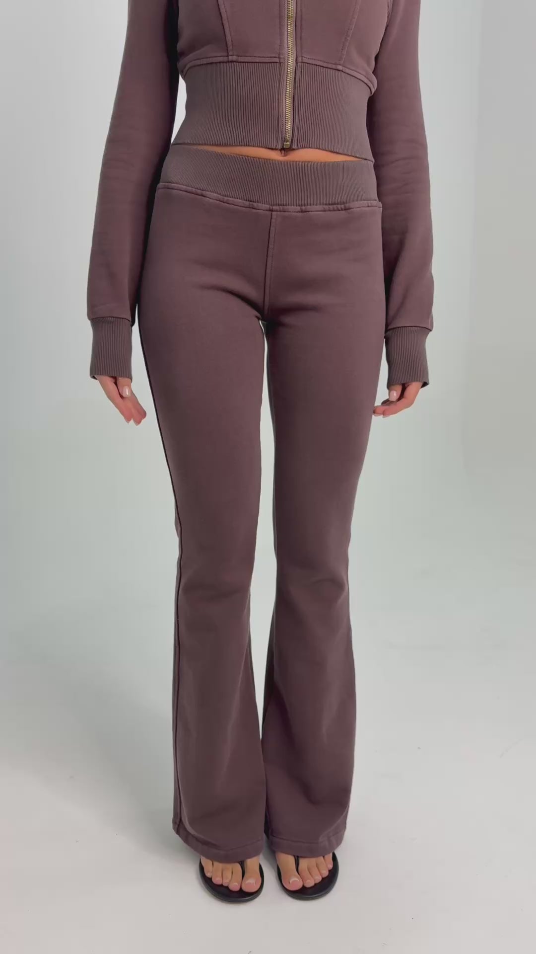 Fitted Flare Pants—Made from super-soft brushback cotton, these pants feature our new and improved elasticated waistband, bum pockets, ribbed panels, and trademark distressed logo. Style with the matching Jacket.
